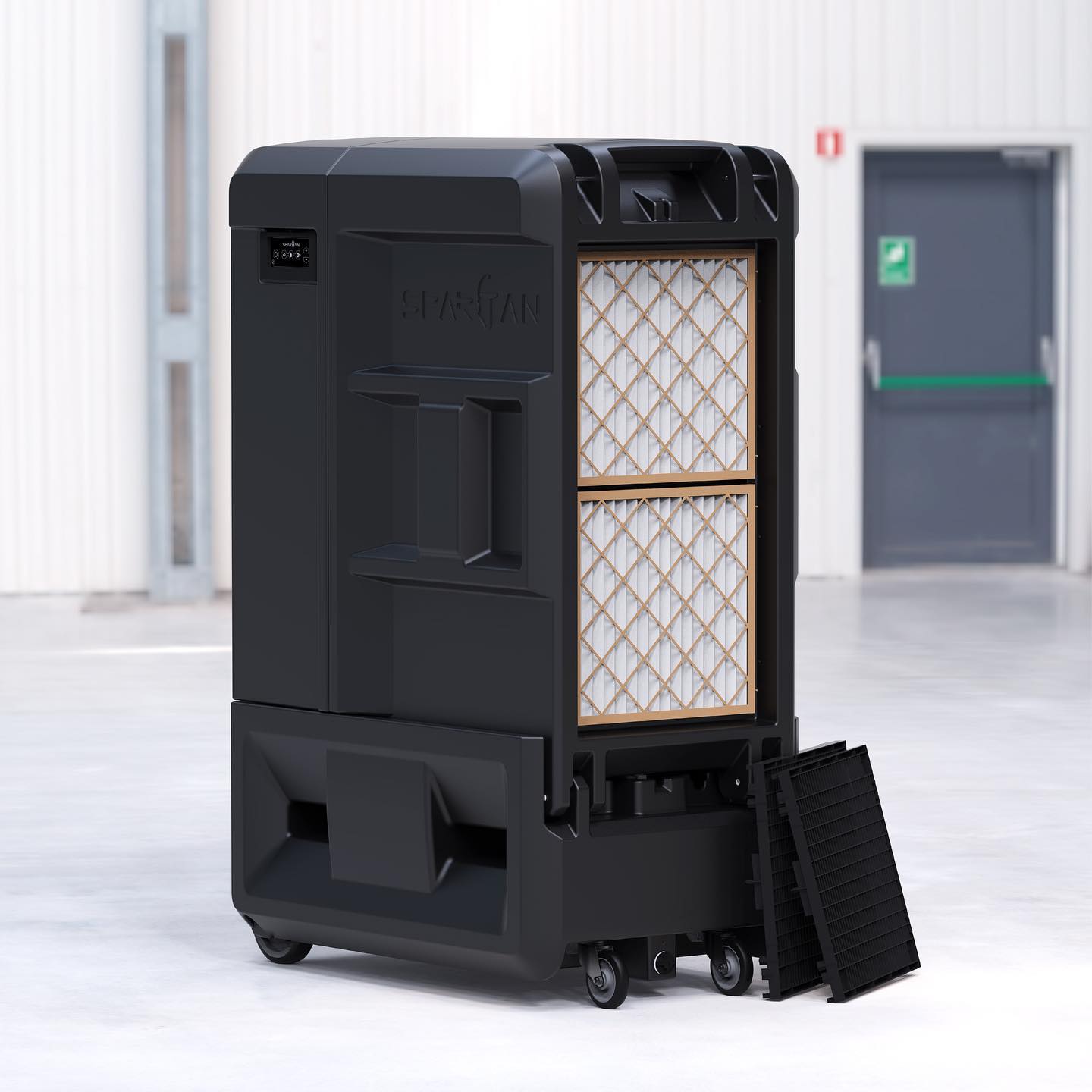 Combata las temperaturas extremas y atrape hasta el 98% de los alérgenos, contaminantes y virus transportados por el aire con Spartan, un revolucionario sistema móvil de enfriamiento evaporativo que realmente es único en su clase.